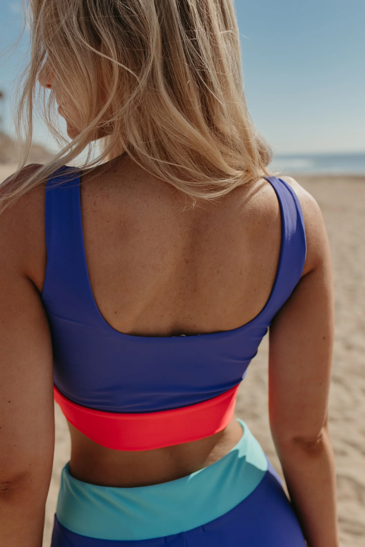 Ride the waves in style with our SURF RIDER SPORTY SWIM TOP IN BLUE COLORBLOCK WITH BOY SHORT! This colorblock design features a neon coral waistband for a pop of fun, while its sporty and double lined construction offers both support and comfort. Sewn in cups add a girly touch to this versatile top, perfect for working out or soaking up the sun. On a purple/blue base, you'll be beachy and ready for anything!