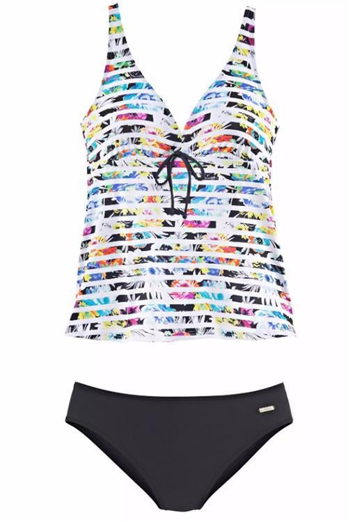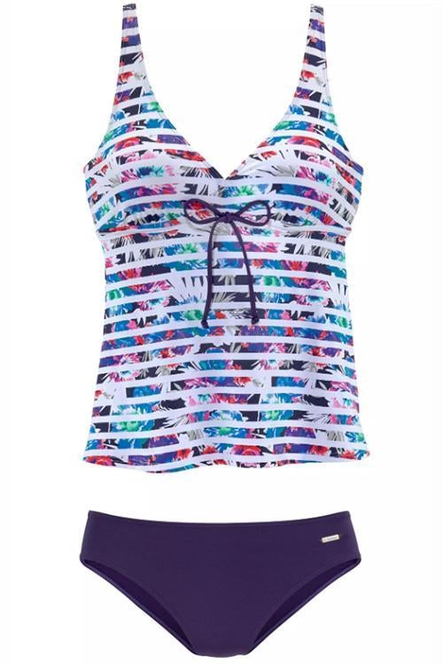 Tankini mit V-Ausschnitt, Streifenmuster und Bandagenärmeln